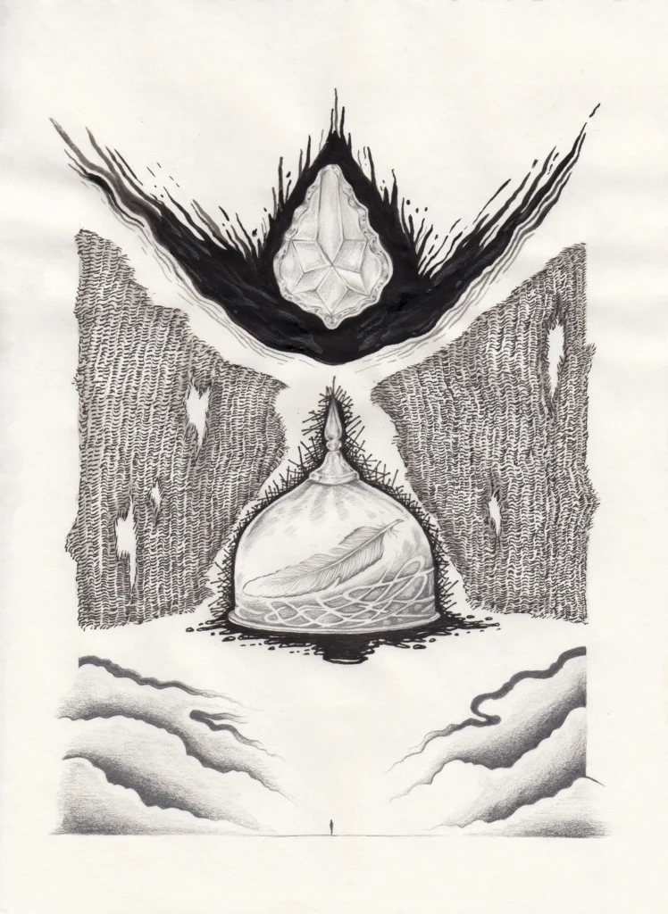 Pen, pencil and ink on paper